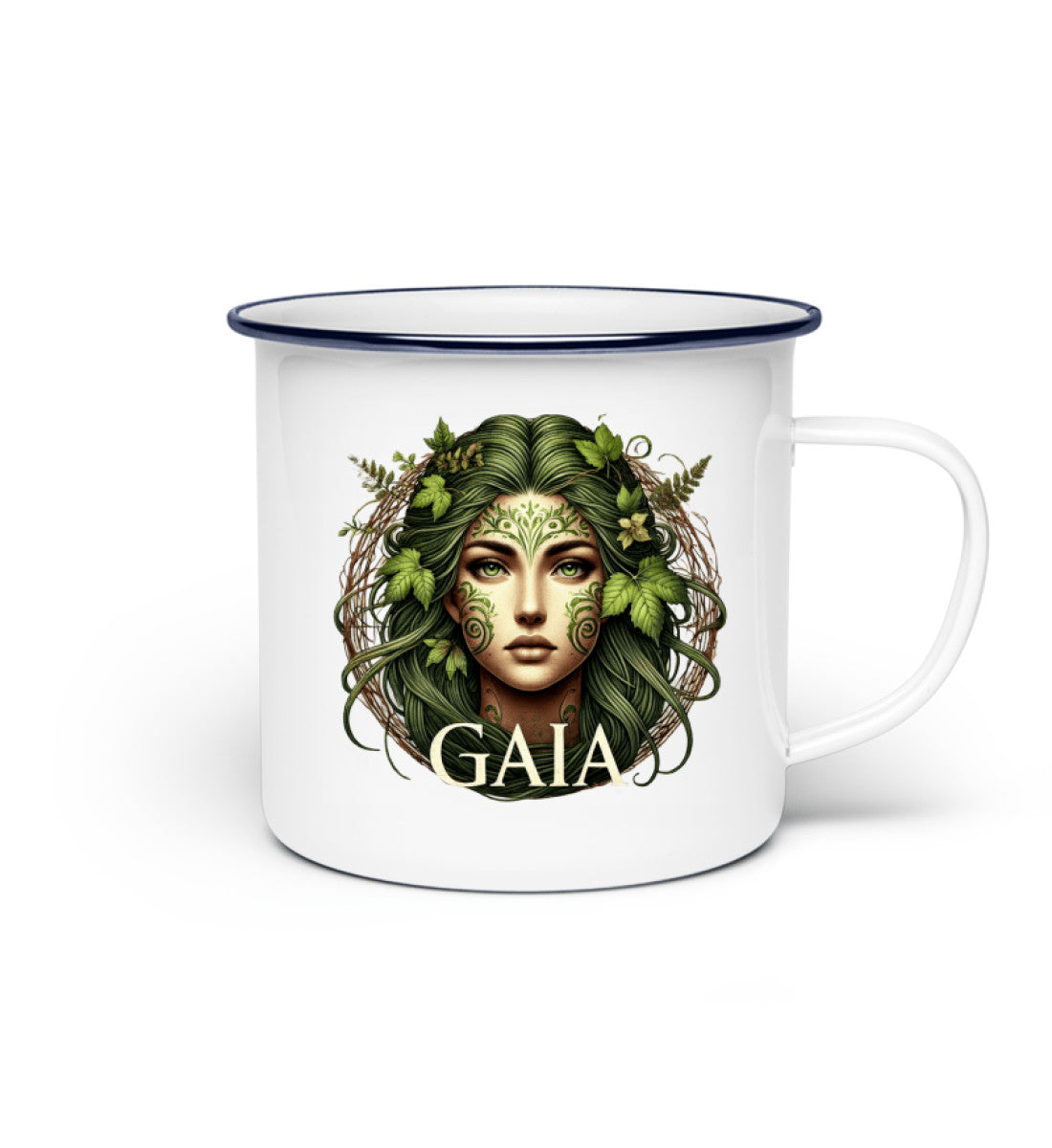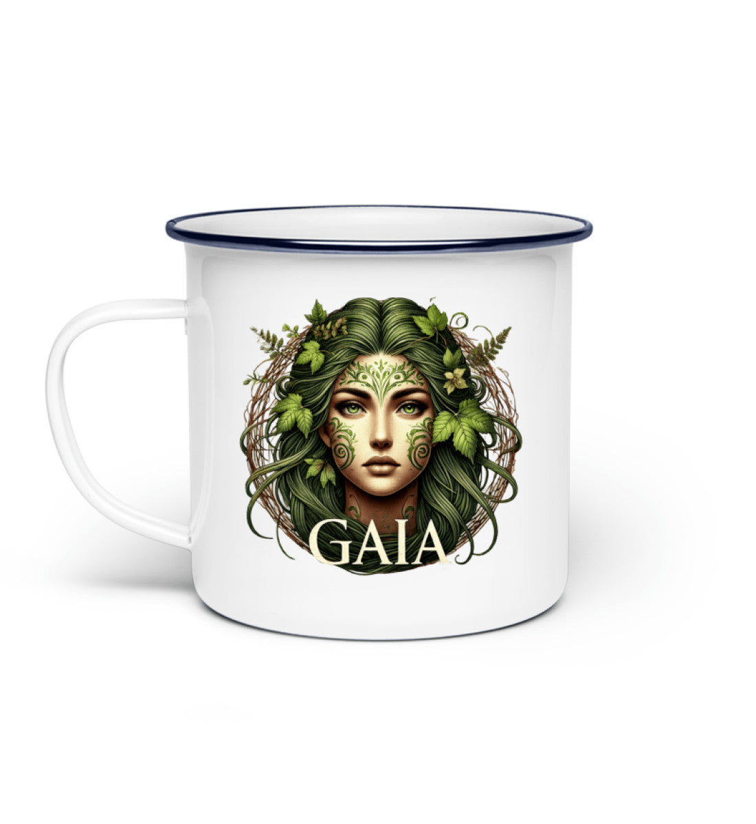 Diese robuste Emaille-Tasse zeigt das kraftvolle Motiv von Gaia, der großen Erdmutter -Sinnbild für Lebenskraft, Naturverbundenheit und weibliche Urenergie. Ihre grüne Präsenz begleitet dich auf deinen Wegen durch die Natur, beim Morgenkaffee am Feuer oder der Teepause in der Hängematte.