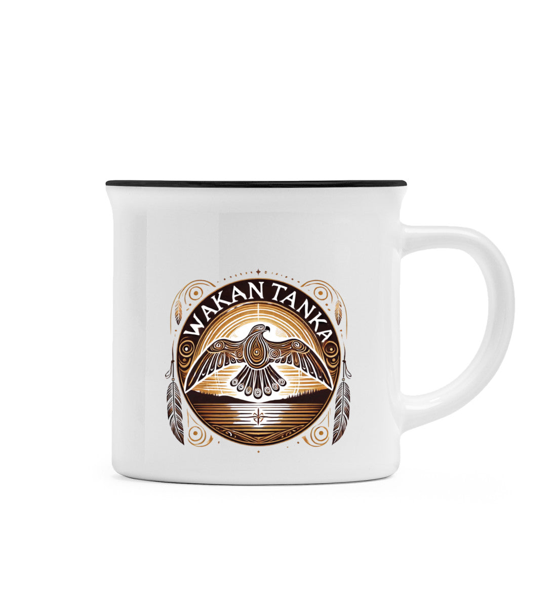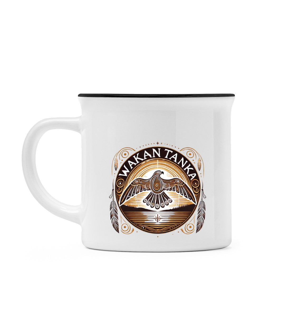 Diese Tasse zeigt den kraftvollen Adler als Symbol für Wakan Tanka, das Große Geheimnis. In vielen indigenen Traditionen steht dieser Begriff für die göttliche Schöpfungskraft - das, was alles durchdringt und miteinander verbindet. Der Adler mit ausgebreiteten Flügeln erinnert daran, dass wir Teil von etwas Größerem sind und immer wieder den weiten Blick brauchen.