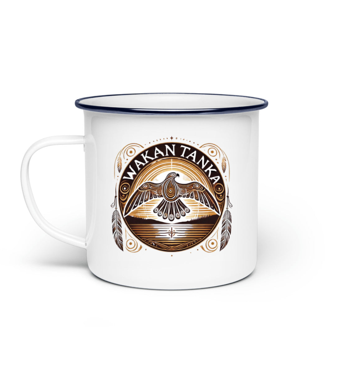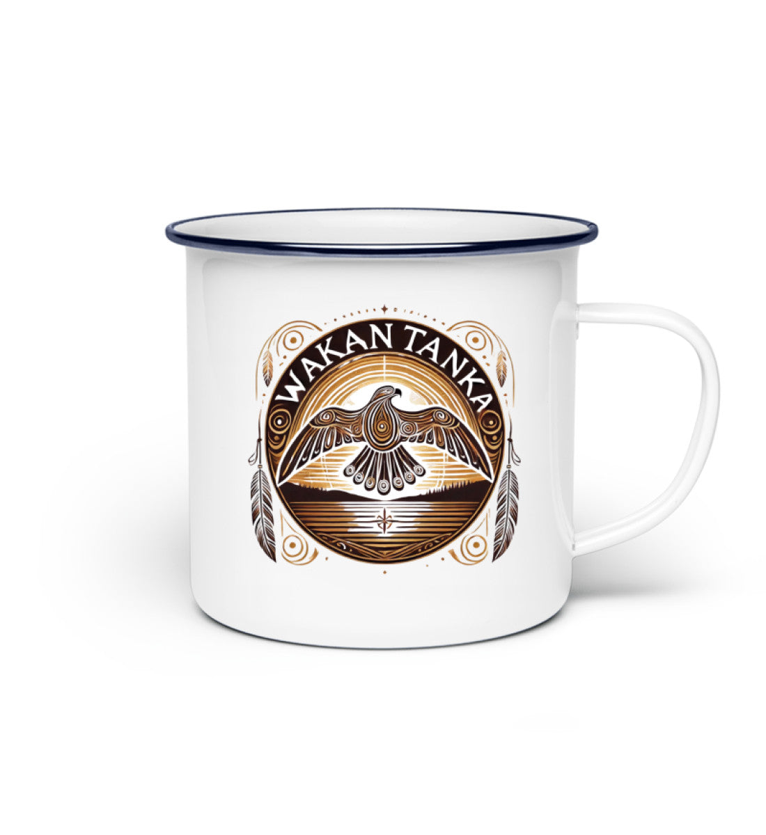 Diese beidseitig bedruckte Emaille-Tasse ist der perfekte Begleiter für alle, die sich mit dem Spirit der Natur verbinden - ob am Lagerfeuer, in der Natur oder beim Morgenritual mit Tee oder Kaffee. Dank ihrer Robustheit eignet sie sich ideal für den Wanderrucksack, das Tipi oder deinen Alltag.