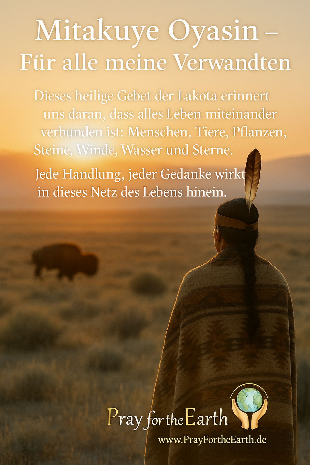 Mitakuye Oyasin ist ein heiliges Gebet der Lakota und bedeutet „Für alle meine Verwandten“.