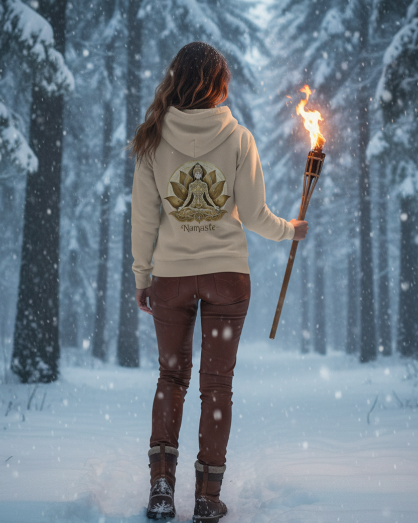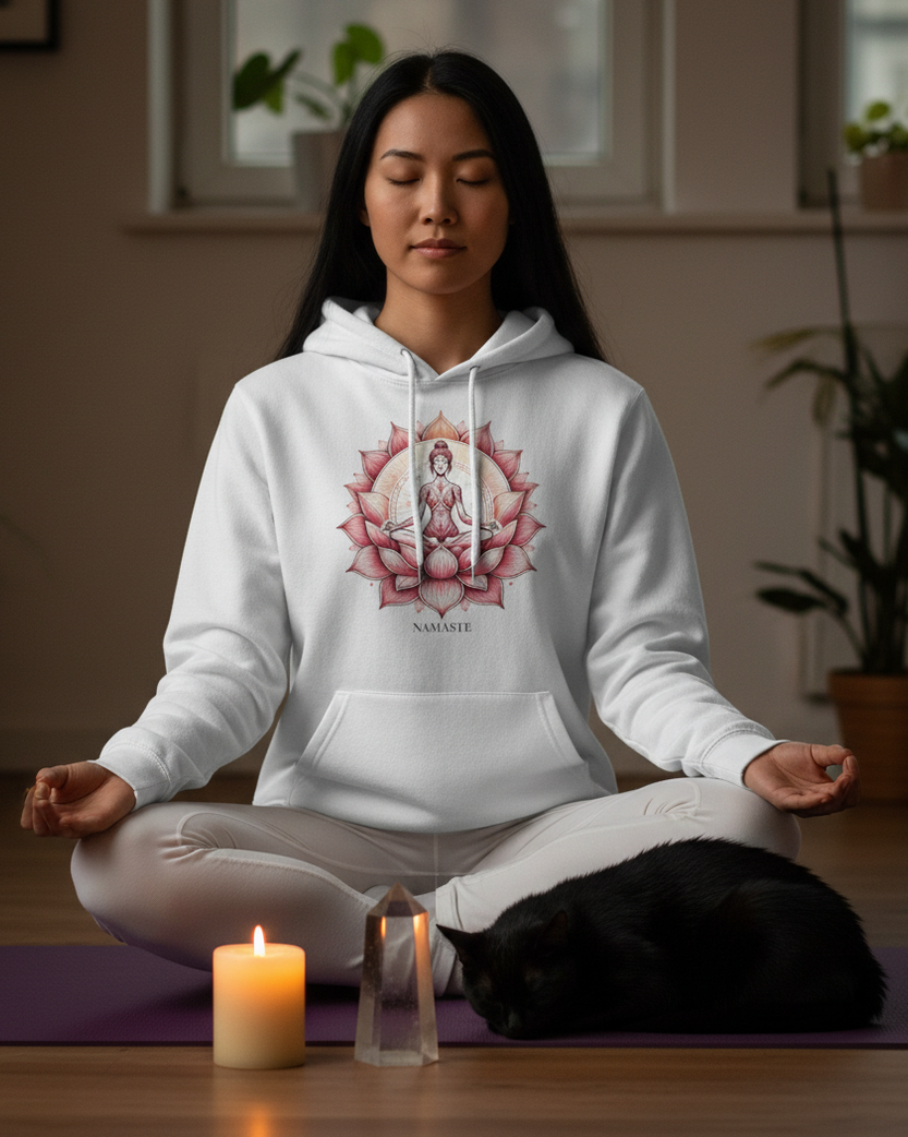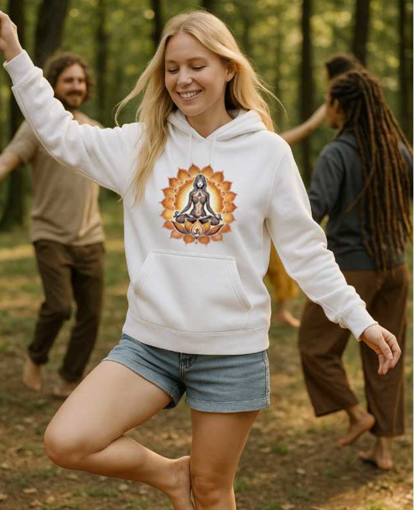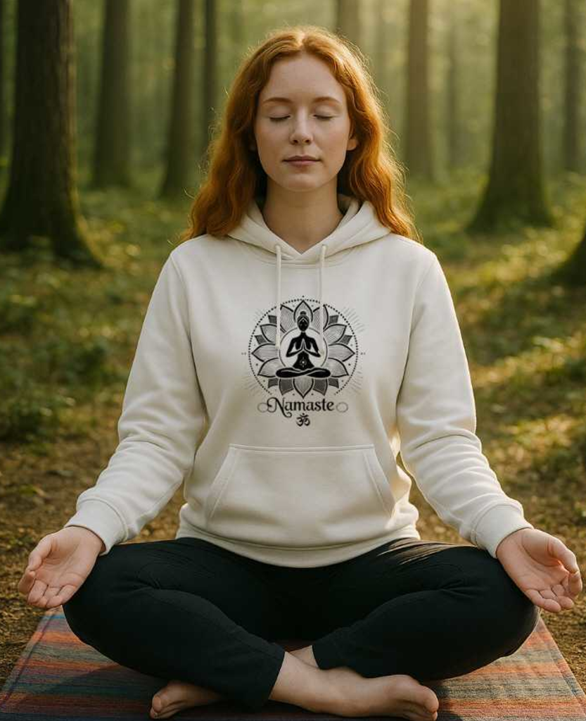 Unsere Yoga Hoodies sind kuschelig, angenehm zu tragen und bestehen aus 100 % Bio-Baumwolle. Sie werden fair produziert, sind vegan und zertifiziert - für eine bewusste und natürliche Yoga-Praxis. Mit ihrem Unisex-Schnitt bieten sie dir Komfort, Kängurutaschen und eine Kapuze, die dich sanft schützt. Spirituelle Motive machen die Hoodies zu treuen Begleitern - ob beim Yoga, in der Meditation, auf Reisen oder im Alltag.