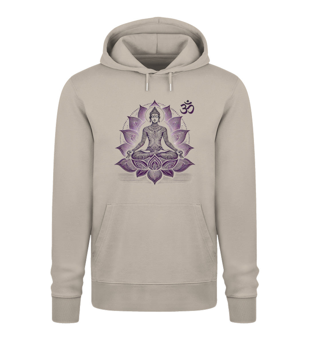Dieser Hoodie besteht aus 100 % Bio-Baumwolle, ist fair und vegan produziert, zertifiziert nach GOTS, OEKO-TEX Standard 100, Fair Wear Foundation, PETA-Approved Vegan. Mit Kapuze, Kängurutasche und einem angenehm kuscheligen Tragegefühl ist er ein verlässlicher Begleiter - ob in deiner Praxis, auf Reisen oder wenn es draußen kühler wird.
