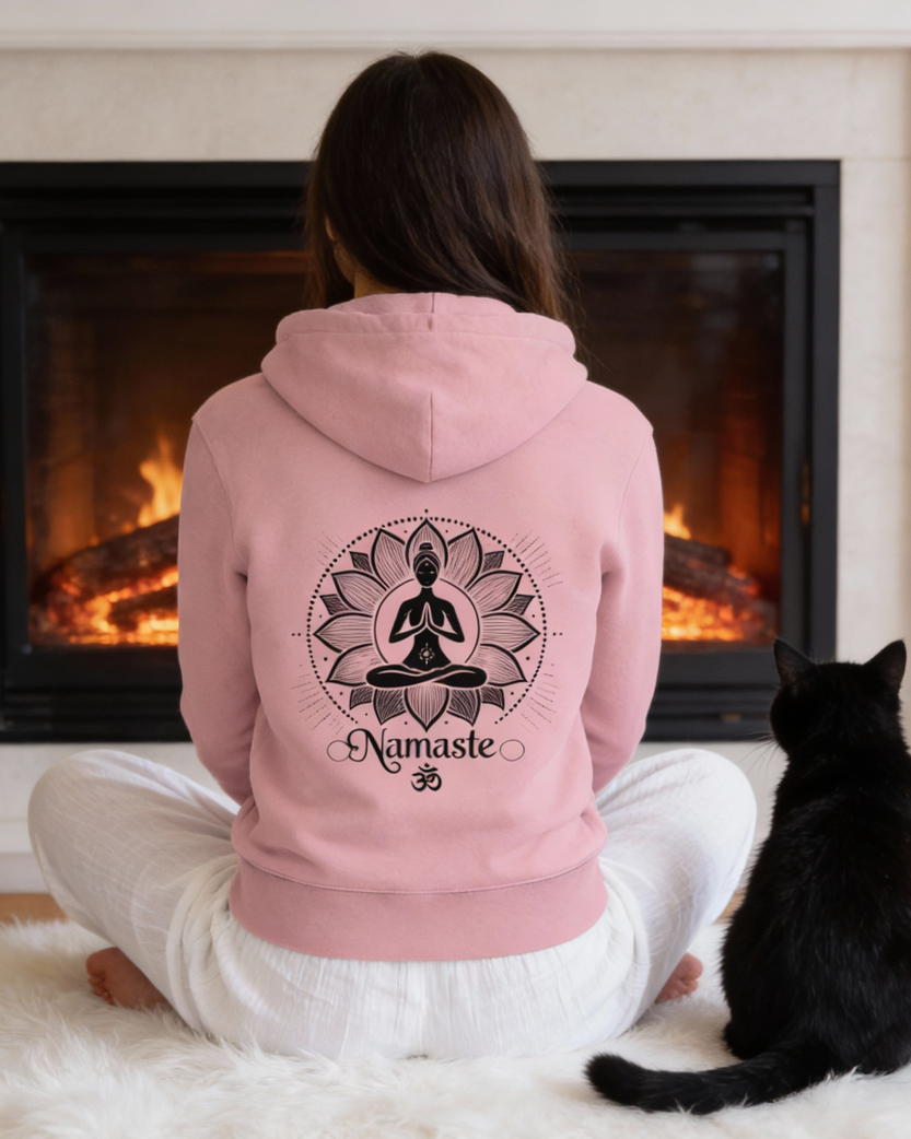Unsere Yoga Hoodies sind kuschelig, angenehm zu tragen und bestehen aus 100 % Bio-Baumwolle. Sie werden fair produziert, sind vegan und zertifiziert - für eine bewusste und natürliche Yoga-Praxis. Mit ihrem Unisex-Schnitt bieten sie dir Komfort, Kängurutaschen und eine Kapuze, die dich sanft schützt. Spirituelle Motive machen die Hoodies zu treuen Begleitern - ob beim Yoga, in der Meditation, auf Reisen oder im Alltag.