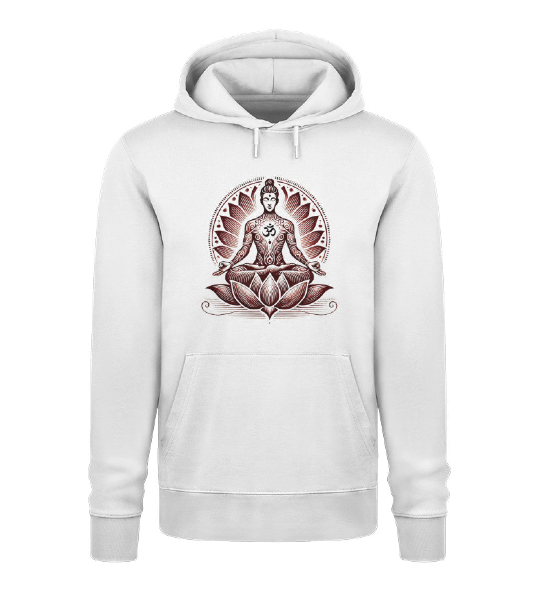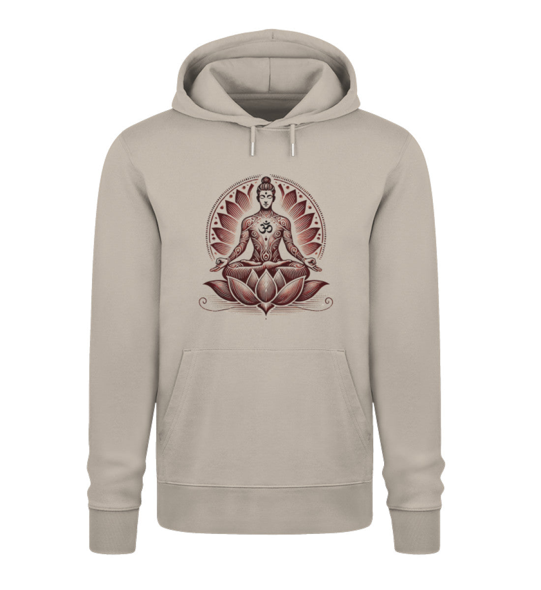 Dieser Hoodie besteht aus 100 % Bio-Baumwolle, ist fair und vegan produziert, zertifiziert nach GOTS, OEKO-TEX Standard 100, Fair Wear Foundation, PETA-Approved Vegan. Mit Kapuze, Kängurutasche und einem angenehm kuscheligen Tragegefühl ist er ein vielseitiger Begleiter - ob in der Yogastunde, beim Meditieren oder wenn es draußen kühler wird.