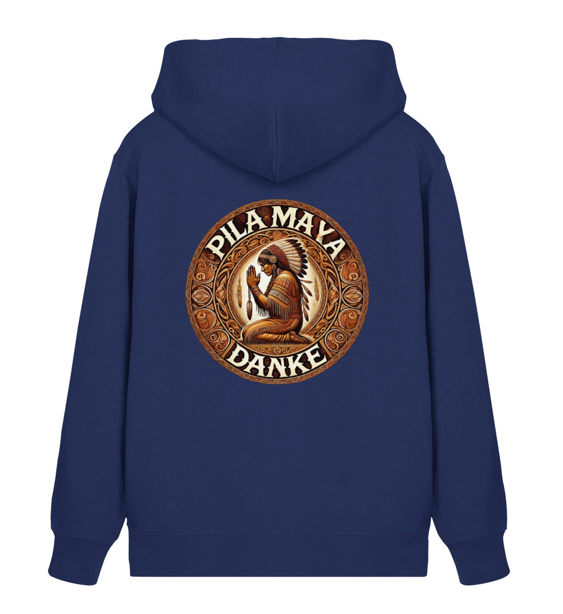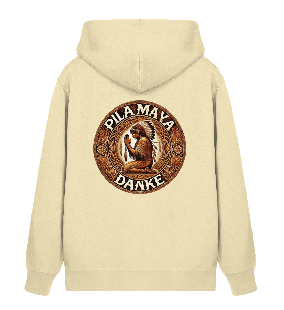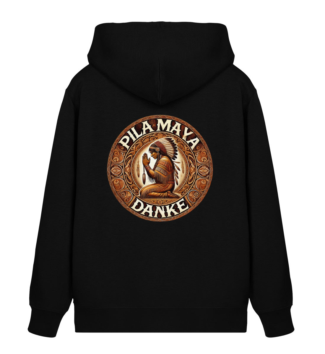 Diese Kapuzenjacke ist mehr als nur ein Kleidungsstück – sie ist eine stille Geste des Herzens. Pilamaya stammt aus der Sprache der Lakota und bedeutet „Danke“.