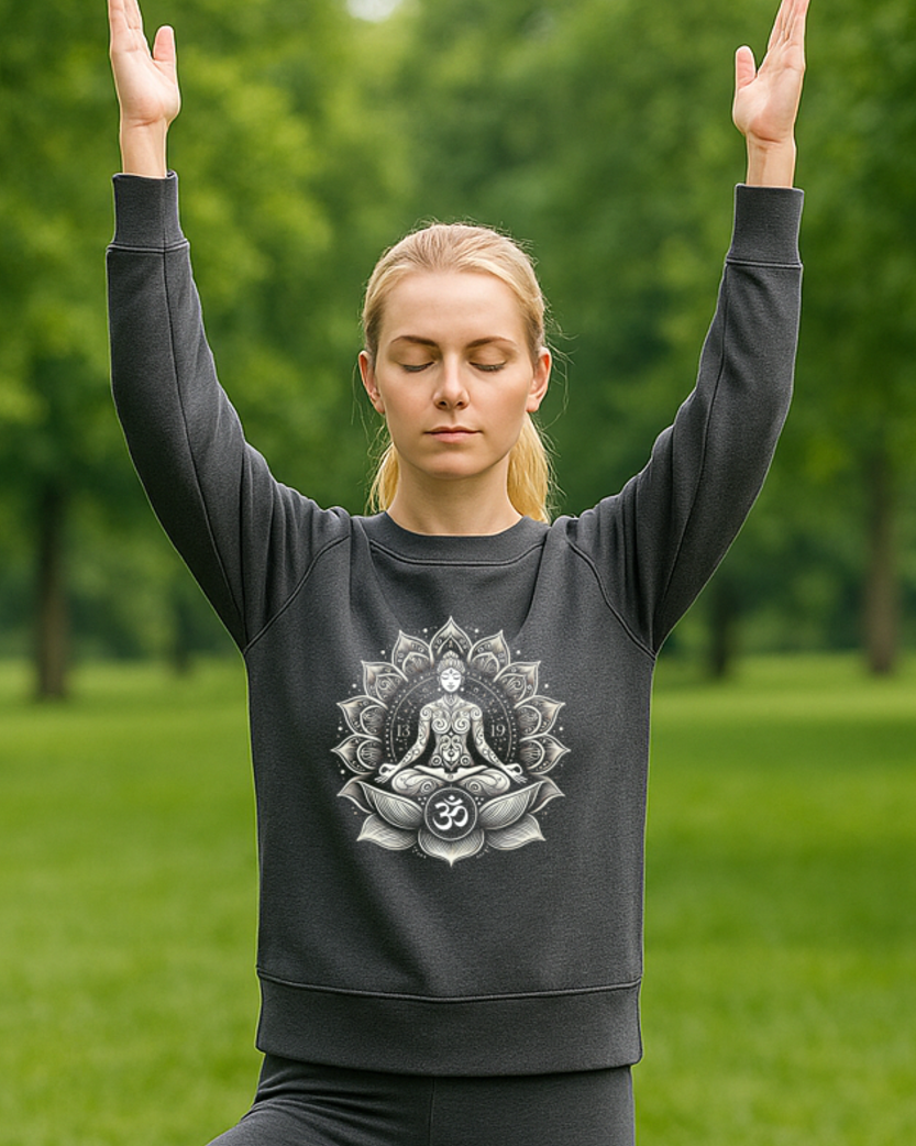 Unsere Yoga Sweatshirts sind angenehm weich, wärmend und bestehen aus 100 % Bio-Baumwolle. Sie werden fair produziert, sind vegan und zertifiziert - für eine bewusste und natürliche Yoga-Praxis. Durch ihren Unisex-Schnitt sind sie vielseitig tragbar und bieten dir Bewegungsfreiheit sowie Komfort. Mit spirituellen Motiven begleiten dich die Sweatshirts achtsam auf deinem Weg - ob im Yoga, in der Meditation oder im Alltag.