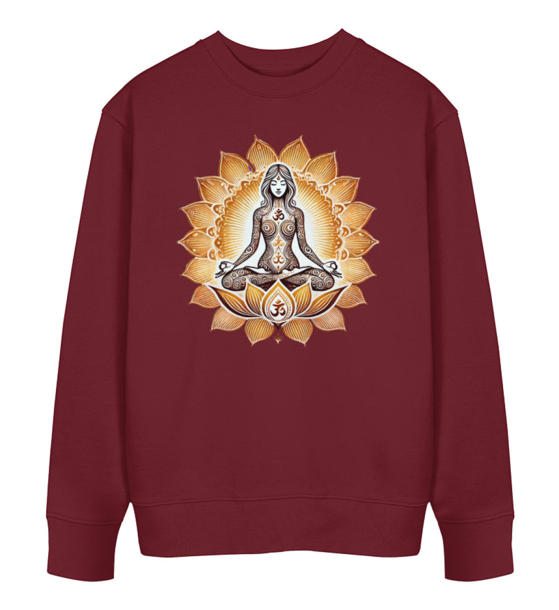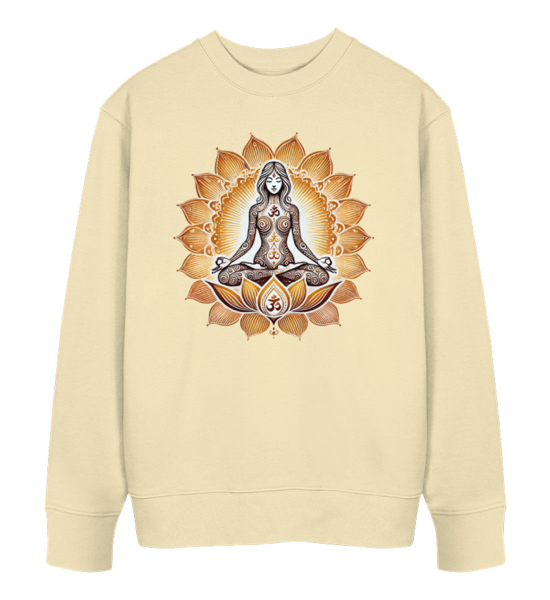 Ob bei deiner Yogapraxis, an frischen Sommerabenden oder in Momenten bewusster Ruhe, das Sonnenlotus Sweatshirt begleitet dich mit Licht und Wärme.
