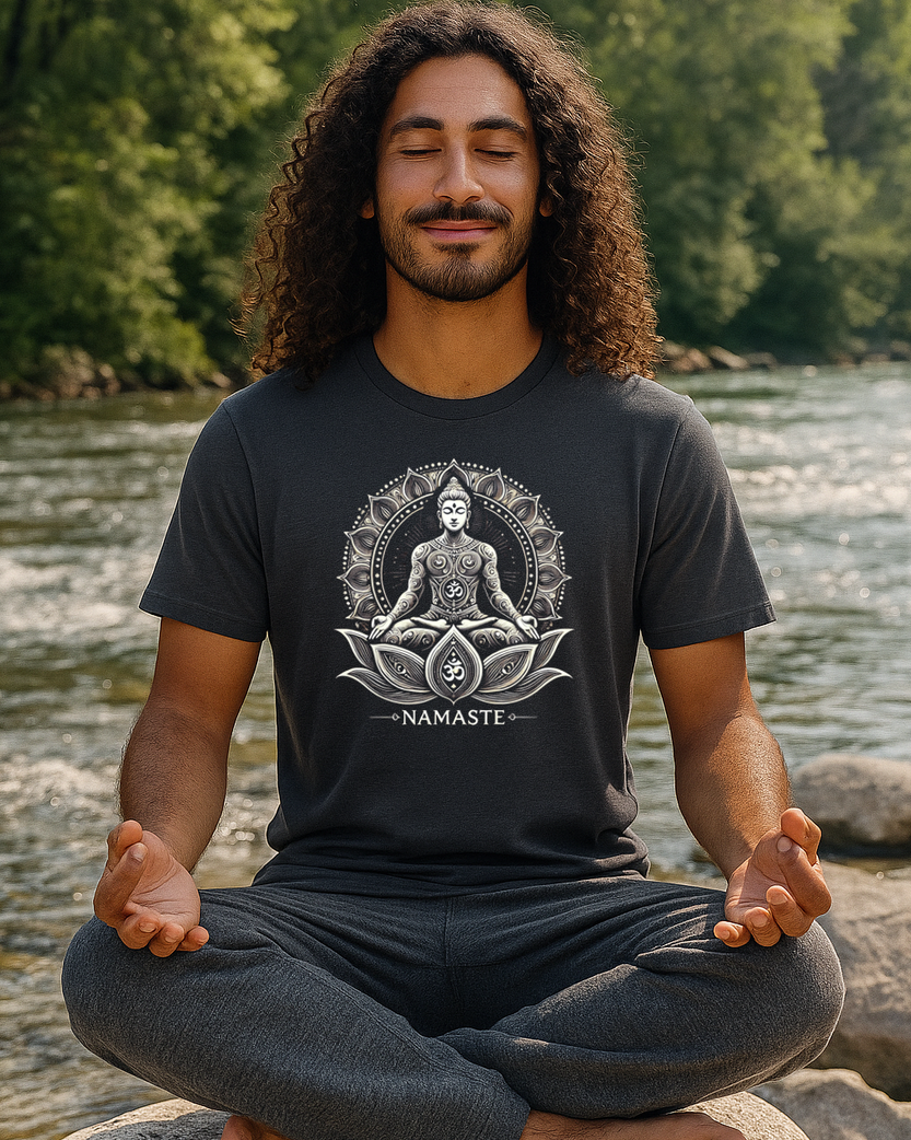 Dieses Männer T-Shirt besteht aus 100 % Bio Baumwolle und ist zertifiziert nach GOTS, OEKO-TEX Standard 100, Fair Wear Foundation und PETA-Approved Vegan. Ideal für Meditation, Retreats oder als stilles Zeichen innerer Stärke im Alltag.